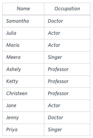 Occupation will only contain one of the following values: Doctor, Professor, Singer or Actor.